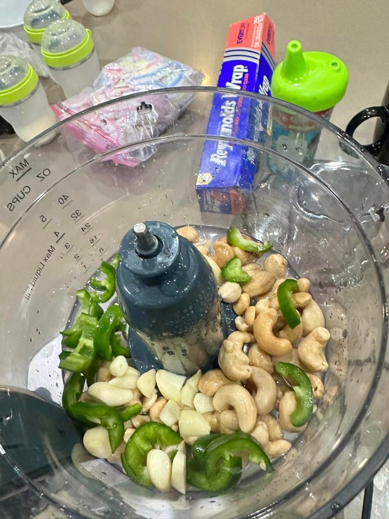 - Step 2: Once the cashews have finished soaking you’ll be ready to make the sauce: add drained cashews, fresh water, jalapeno, garlic, fresh lime juice, salt, onion powder and black pepper to a blender. Blend on high until sauce comes together. If you want a bit of a thinner sauce, add 1-2 tablespoons more water. Set aside.
