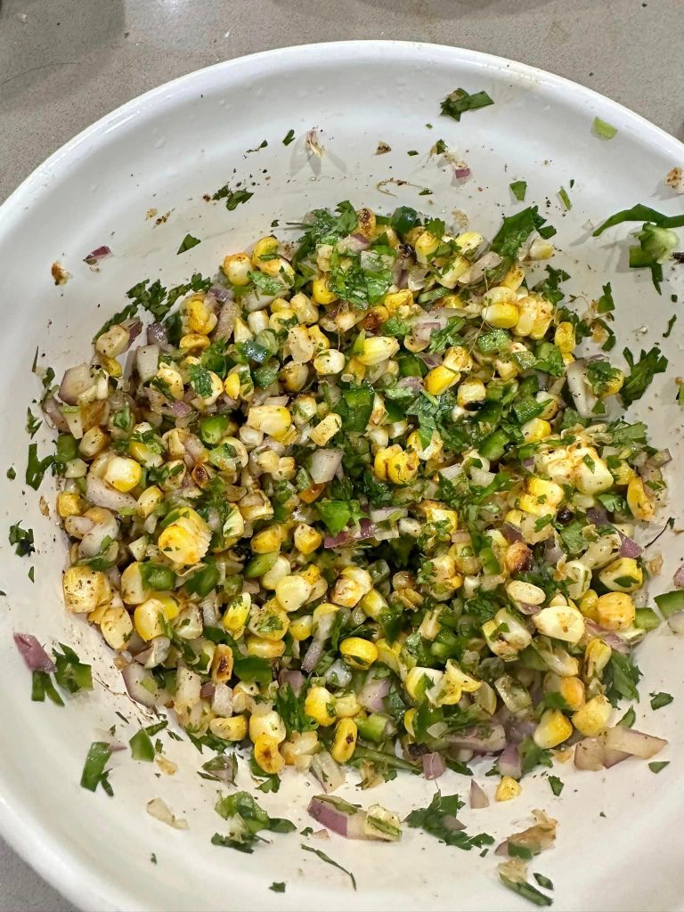 - Step 6: Allow corn to cool a bit before cutting it off the cob and placing corn into a medium bowl along with following ingredients for the salsa: diced or sliced avocado, jalapeno, cilantro, red onion, lime and salt and pepper, to taste. Toss to combine.