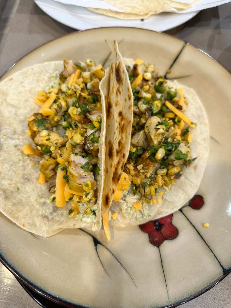 - Step 7: Char your tortillas if you’d like, then top each with a spoonful of the jalapeno cashew lime sauce, chicken, street corn mixture, extra jalapenos and an extra drizzle of cashew lime sauce on top. Enjoy! Serves 4; 2 street corn chicken tacos each.