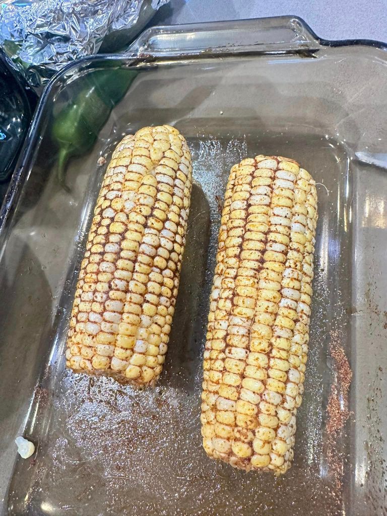 - Step 4: Next prepare your corn: drizzle corn with olive oil and rub with chili powder, cumin and salt and pepper.